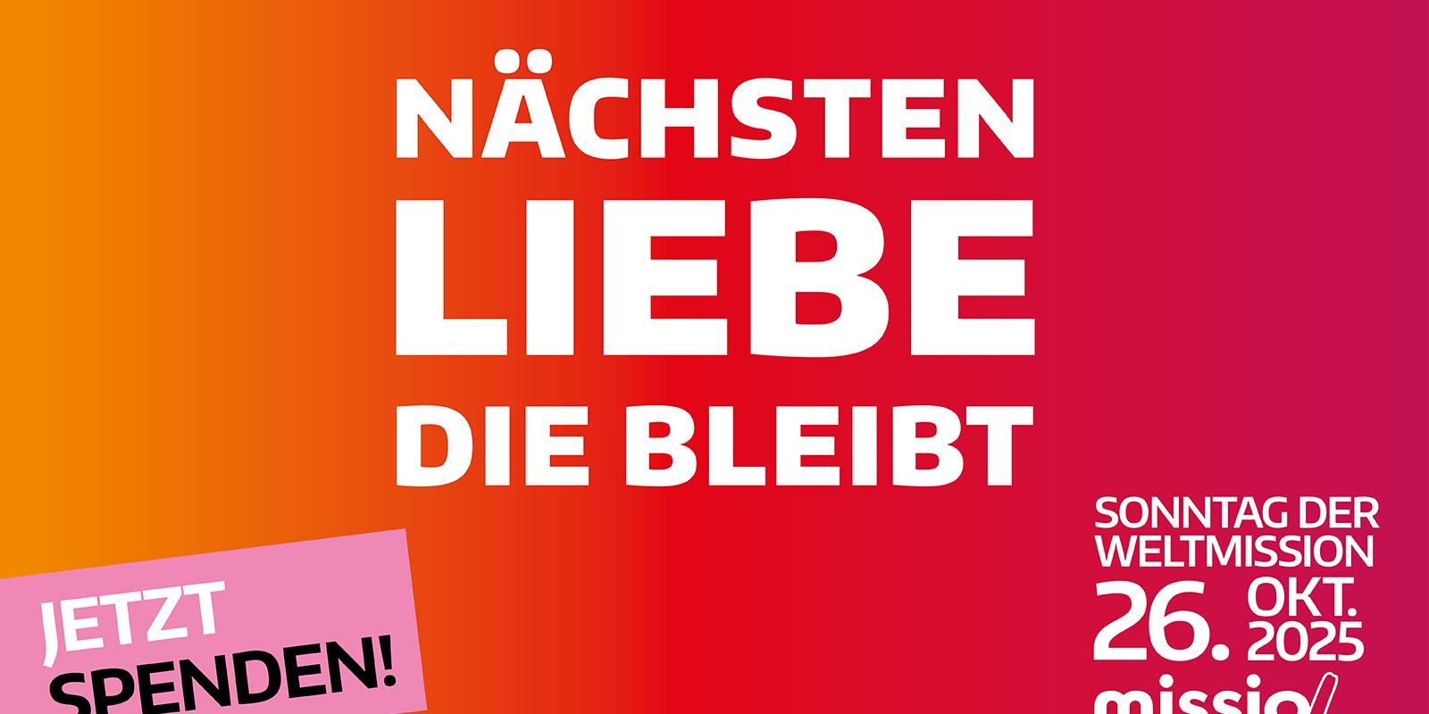 Der Weltmissionssonntag am 26. Oktober steht für eine Welt, in der Hoffnung und Menschlichkeit stärker sind als Hass und Verzweiflung. Die Solidaritätskollekte ermöglicht konkrete Unterstützung von Menschen, die sich aus dem Glauben heraus für andere einsetzen – überall dort, wo Menschen Gefahr laufen, die Hoffnung auf eine lebenswerte Zukunft zu verlieren. Wir bitten Sie: Unterstützen Sie unsere Schwestern und Brüder durch Ihr Interesse, Ihr Gebet und eine großzügige Spende bei der Kollekte am kommenden Sonntag der Weltmission. Dafür danken wir Ihnen herzlich.